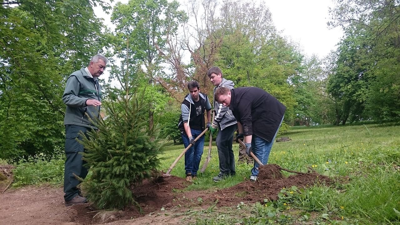 Jede Menge Arbeit steht auch noch vor dem Fest am Sonntag an. Seit gestern werden Hohenrodes "Giganten" wieder von Schülerinnen und Schülern des Humboldt-Gymnasiums unterstützt. An vier Tagen helfen die Schüler beim Baum- und Strauchschnitt, rücken dem Unkraut zu Leibe und packen bei der Säuberung der Wege an. Für morgen hat sich eine Gruppe Studenten angekündigt die den Baumbestand des Arboretums genauer untersuchen will.