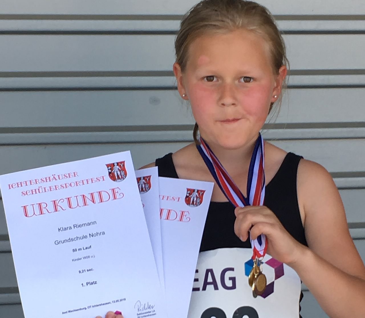 Klaras großes Ziel ist einmal das Sportgymnasium zu besuchen und Olympiasiegerin zu werden. Sie besucht die 2.Klasse der Grundschule Nohra.
