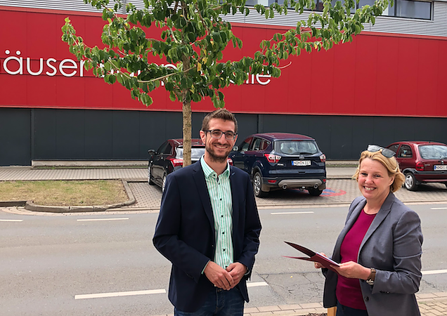 Übergabe Baumpflanzung StadtgrünFondsHeute erfolgte die offizielle Übergabe eines Baumes durch den StadtgrünFonds. Die Baumhasel wurde bereits im Herbst 2017 gepflanzt und geht auf die Initiative Spuren hinterlassen Eine Gemeinschaftsaktion ehemaliger Studierender der Hochschule Nordhausen zurück...