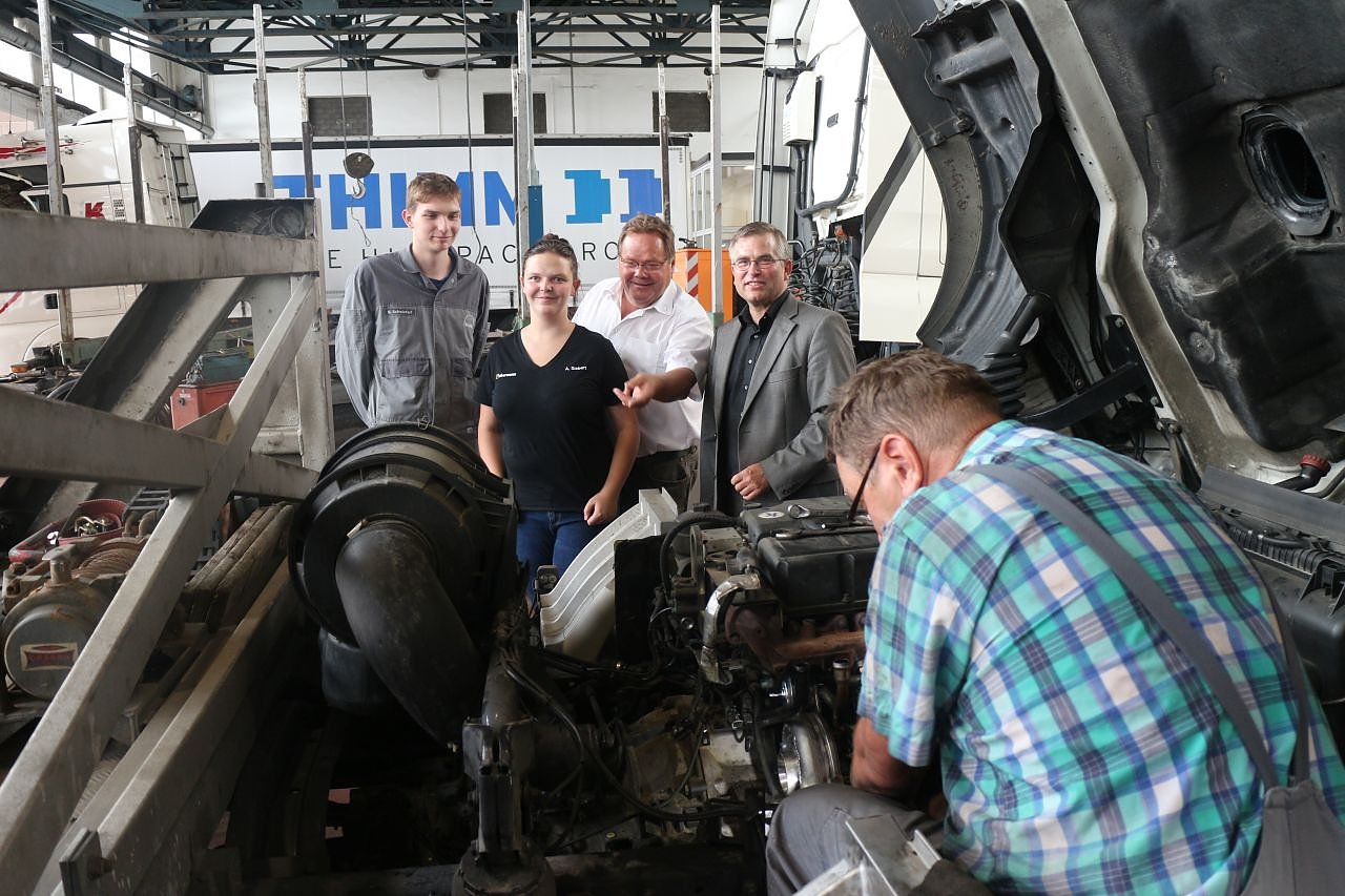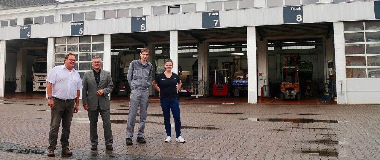 Im Vorfeld des Aktionstages würden die Berufsfelder wie Kraftfahrer, Kfz-Mechatroniker oder Lagerlogistiker in den Schulen der Region vorgestellt. Mit Anne Siebert und Max Schwiefert haben so auch zwei der aktuell sechs Azubis ihren Weg zur Firma Obermann gefunden. "Wir haben von Jahr zu Jahr gesehen das es etwas bringt", erzählt der Niederlassungsleiter, nicht nur die Zahl der Bewerbungen sei gestiegen, auch die Qualität der Bewerber habe sich verbessert.