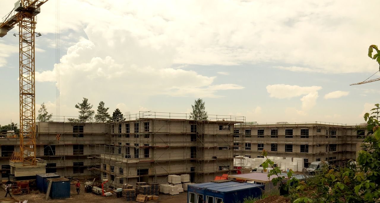 Hier entsteht ein Ensemble aus 84 vollstationären Pflegeplätzen, 34 Wohneinheiten, für eine Tagespflege sowie für eine Begegnungsstätte. Rund 15 Millionen Euro will der DRK-Kreisverband dafür in die Hand nehmen, die laut Planung bis Mitte des kommenden Jahres verbaut werden sollen.