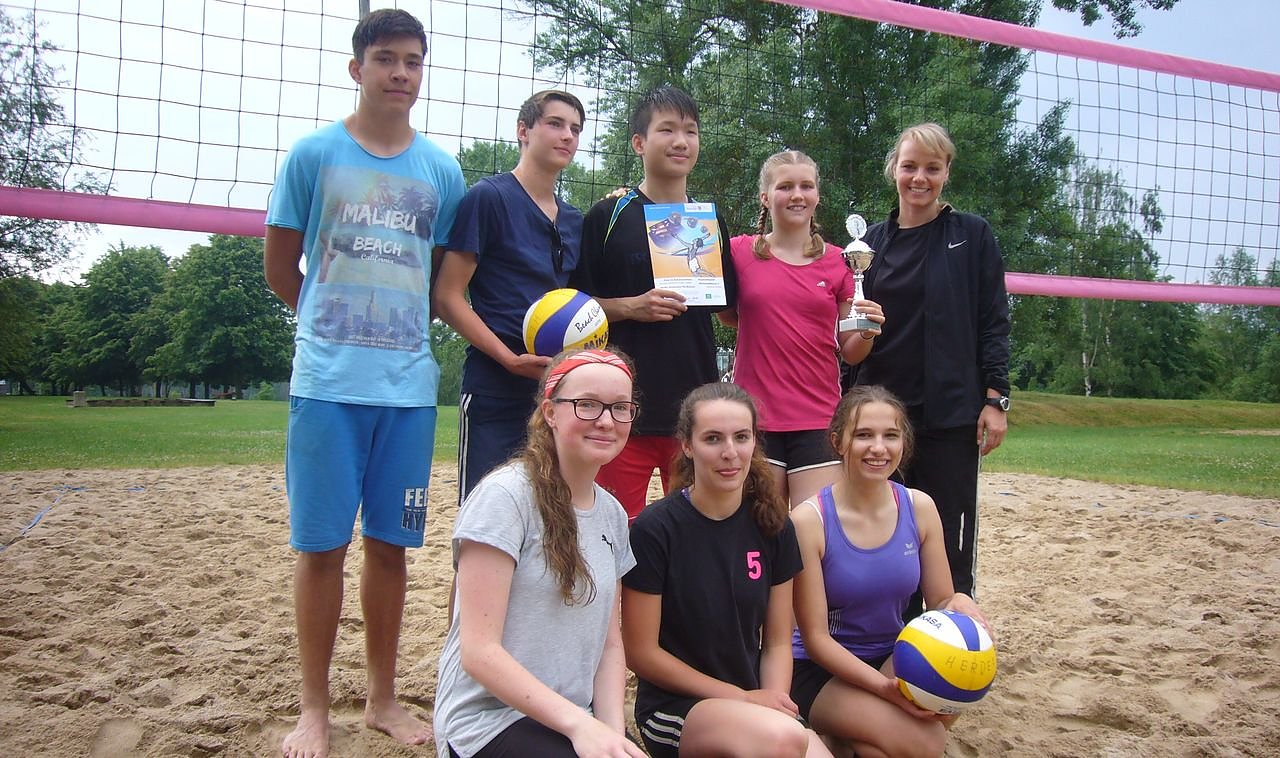 Im Doppel der jungen Damen ließen diese über die gesamte Spielzeit keine Zweifel aufkommen wer die "Sandkiste" als Sieger verlässt, in beiden Sätzen konnte der erspielte Vorsprung immer weiter ausgebaut werden. Einem deutlichen 25:9 im ersten Durchgang folgte nur wenig später ein ebenso souveränes 25:17 im zweiten Abschnitt. Auch im Spiel der Mix-Mannschaft lagen die Herderaner Christopher Stritzel und Nicole Kaempffe lange Zeit in Führung, mussten sich aber am Ende hauchdünn dem SVC Duo vom Humboldt-Gymnasium 25:27 geschlagen geben.