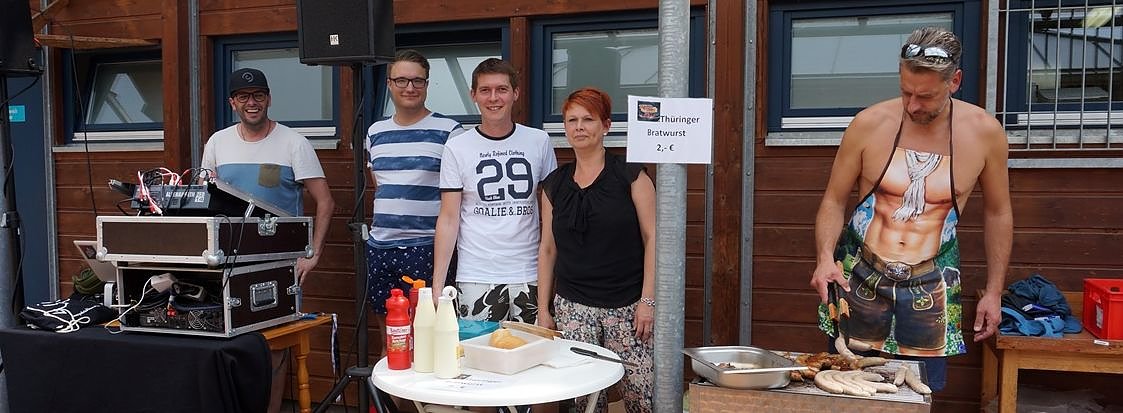 Über 700 Badegäste aus dem gesamten Landkreis kamen gestern in das Freibad, um den Bürgermeister zu unterstützen. Er grillte gemeinsam mit Katrin Schönemann von der Gemeinde Niedersachswerfen und Andrè Moser von der Verwaltungsgemeinschaft bis zum späten Nachmittag 300 Würstchen und konnte so eine Spende in Höhe von 600 Euro einnehmen.