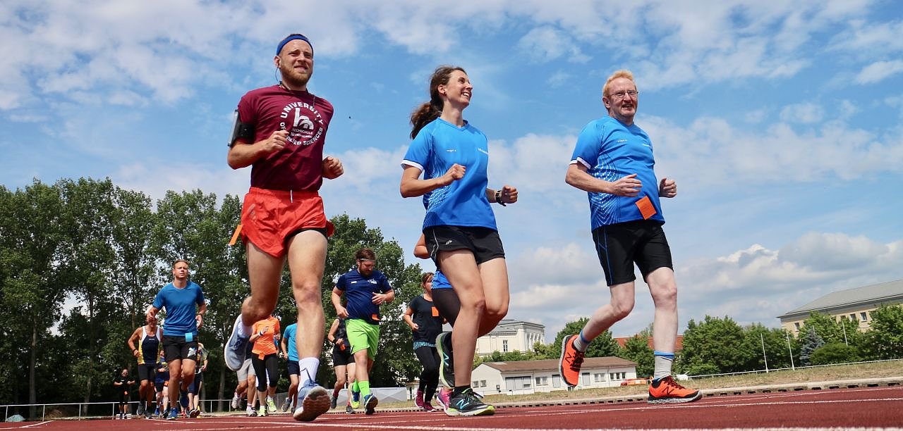 Für die nötige Motivation sorgt beim Laufen der "Hase", die Anzahl der Runden der einzlenen Läufer wird daran festgemacht wie oft man den rosa-Plüschläufer überwinden kann. Dem Schirmherren der Veranstaltung, Oberbürgermeister Kai Buchmann gelang das über die Halbstunden-Distanz immerhin vier mal, der Rekord des Stundenlaufs liegt bei 17.140 Metern.