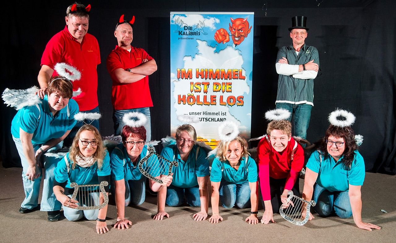 Diese und fünf weitere Spielszenen erwarten Sie, wenn Sie uns auf den Weg durchs höllische Universum begleiten. Sie werden vielleicht schon bei früheren Besuchen unserer Vorführungen festgestellt haben, dass unser Spiel mit der Bezeichnung Kabarett nicht immer konform läuft. Viele Darsteller, längere Texte und dramaturgische Ansätze - besser trifft es die Bezeichnung Kabarett - Theater!