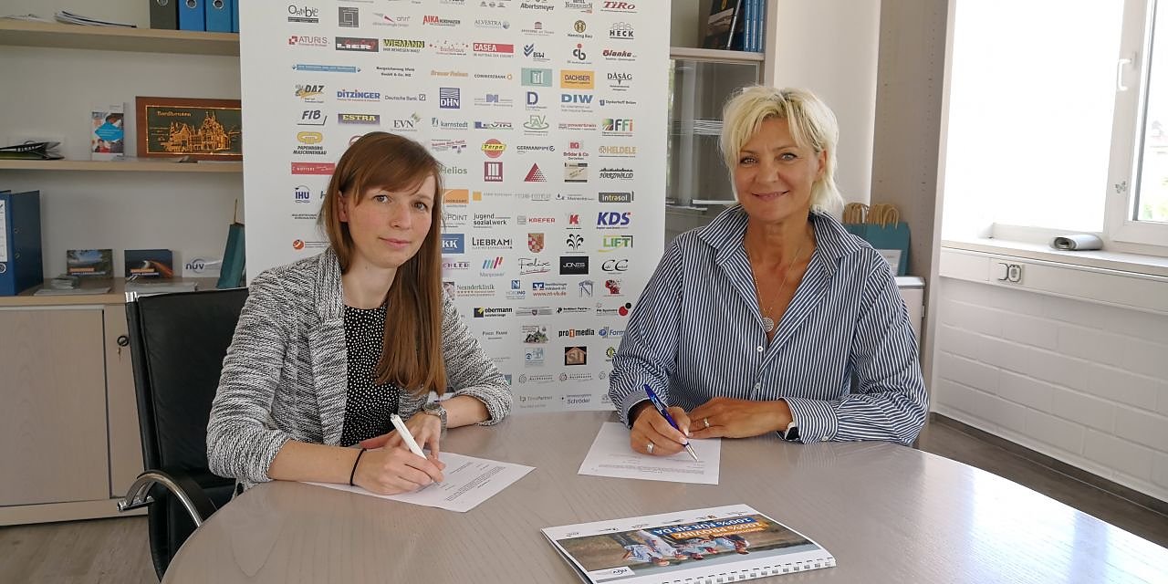 Claudia Rheinländer (NUV) und Jana Jäckisch (Firmenkunden- und Hochschulberaterin TK) bei der Unterzeichnung der Kooperationsvereinbarung (Foto: Nordthüringer Unternehmerverband)