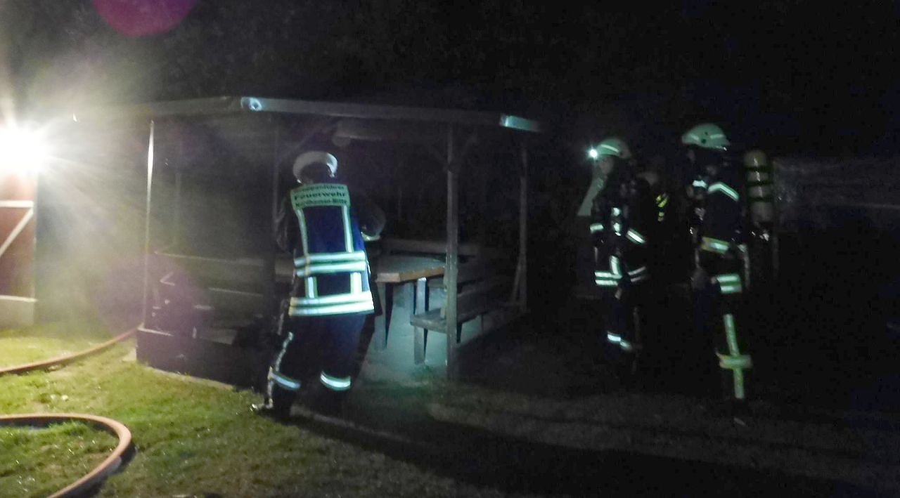 Kurz nach Mitternacht stand ein Schuppen auf einem Gartengrundstück in Flammen. Die Feuerwehr hatte den Brand schnell gelöscht, dennoch brannte der Schuppen vollständig aus.