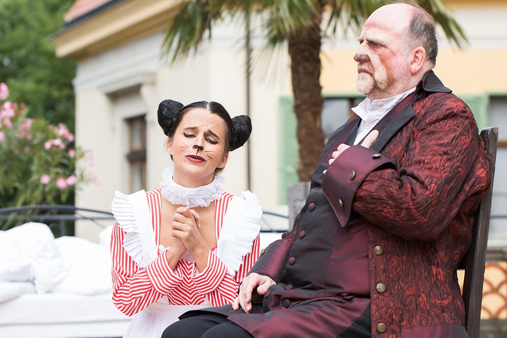 Thomas Bayer als Doktor Uberto und Leonor Amaral als Magd Serpina glänzten mit ihre Stimmen (Intermezzo von Giovanni Battista Pergolesi). Samuël Dorn als Diener Vespone musste mit seinem komödianten Talent zu glänzen, weil es für ihn nicht so schöne Musik gab. Szenenfotos András Dobi.