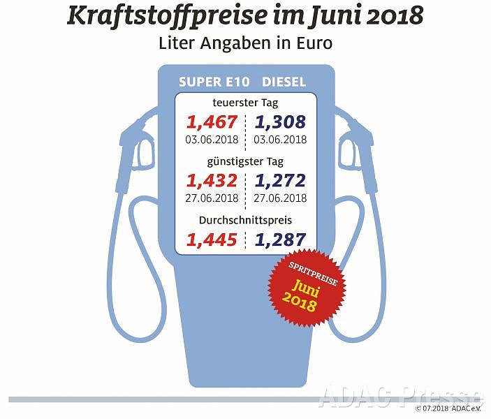 Zu Beginn der Hauptreisesaison sind die Kraftstoffpreise in Deutschland erneut gestiegen. Wie die monatliche Auswertung des ADAC zeigt, kostete im Juni ein Liter Super E10 im Monatsmittel 1,445 Euro und damit 0,8 Cent mehr als im Mai. Bei Diesel stiegen die Preise noch stärker an. Für einen Liter mussten die Autofahrer im Schnitt 1,287 Euro bezahlen, im Vormonat war es noch ein Cent weniger...