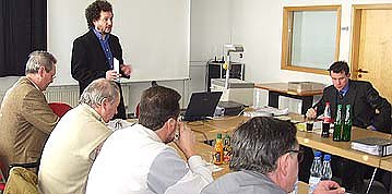 Professor Wesselak, der Gründungsprofessor des Studienganges Regenerative Energietechnik, der das Projekt Netzwerk Biogas federführend betreut, eröffnete die Veranstaltung mit der Einladung zum 2-tägigen Innovationsforum, das am 3. und 4. Februar in Nordhausen stattfinden wird. Auf dieser Konferenz sollen die Arbeits- und Forschungsergebnisse des Netzwerkes Biogas der Fachwelt und interessierten Öffentlichkeit vorgestellt werden. Ein Vertreter vom Thüringer Bauernverband erläuterte dann in einem ersten Vortrag die Bedeutung alternativer Energiequellen und betonte den diesbezüglichen Einsatz seines Verbandes für gute Rahmenbedingungen.