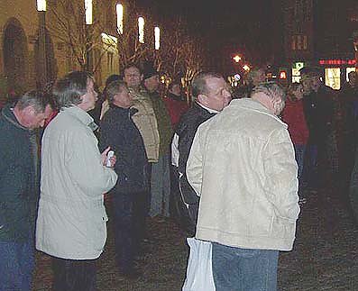 Nordhausen (nnz). Auch im Jahr 2005 sollen die Demos vor dem Nordhäuser Rathaus weitergehen. Sie wenden sich gegen Hartz IV oder die Agenda 2010. Gestern war auch das politisches System dieses Landes in Frage gestellt worden...Wer nein sagt zur Agenda 2010 stellt auch logischer Weise das politischen System der BRD in Frage. Darüber waren sich die 135 Teilnehmer der gestrigen Montagsdemo in Nordhausen einig. Auch darüber, dass kosmetische Operationen zur Verschönerung des Antlitzes dieser gesellschaftlichen Ursache untaugliche Versuche bleiben werden. Beweise für diese Einschätzungen lieferten eine Vielzahl der Diskussionsthemen am offenen Mikrofon. Ob nun die sogenannten Nebeneinkünfte von Abgeordneten, getürkte Medienberichte über die Erfolgsstorie Hartz IV, oder zu Fragen der Steuergerechtigkeit, wonach grosse Konzerne durch geschickte Manipulation kaum noch Steuern zahlen.