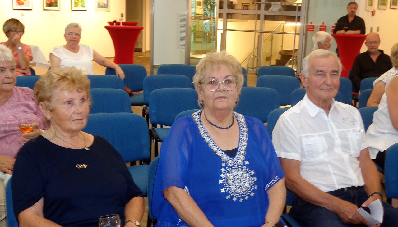 Sebastian Gräser richtete eingangs herzliche Worte der Begrüßung an die trotz großer Hitze erschienenen Gäste und ebenso an die Künstlerin. Wenn auch Helga Richters Kunst seit Dienstagabend erstmals die Wände der KSK-Galerie schmücken, so hat sie doch in den vergangenen Jahren in der Rolandstadt und im Landkreis schon einige Ausstellungen bestritten.