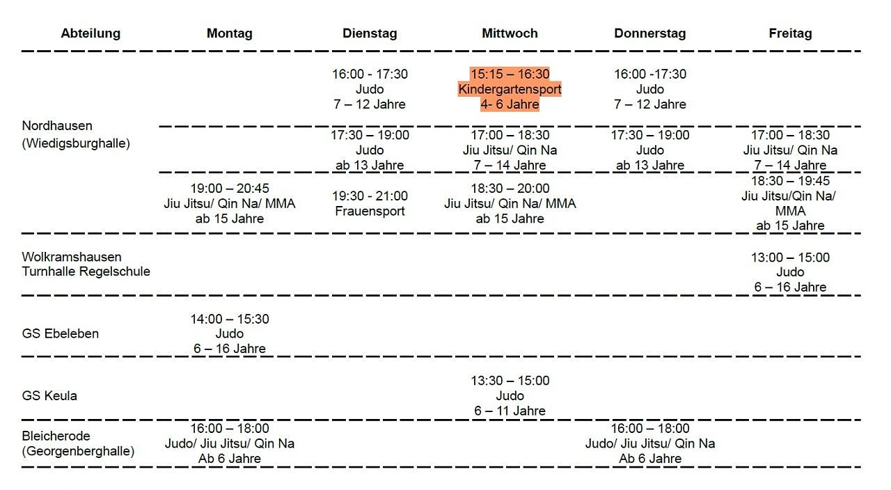 Die SKKA NDH hat nicht nur für Kindergarten Kinder, Kinder und Jugendliche neue Anfängerkurse organisiert, auch Erwachsene Männer und Frauen können sich für Judo oder Jiu-Jitusu/ Qin Na/ MMA und Frauensport ü 30 melden und zwei Wochen kostenloses Training absolvieren. Die Trainingsstätte in Nordhausen ist die Wiedigsburghalle.