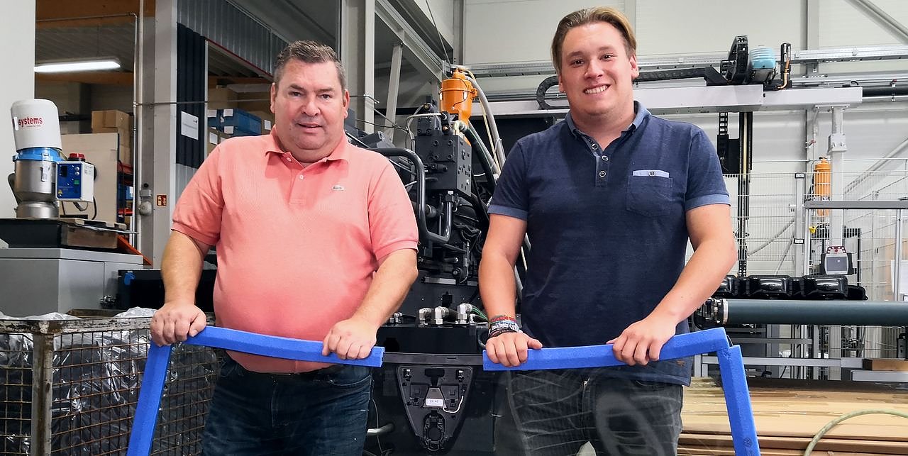 Frank und Max Kirchhoff in der Produktionshalle der Firma (Foto: nnz)