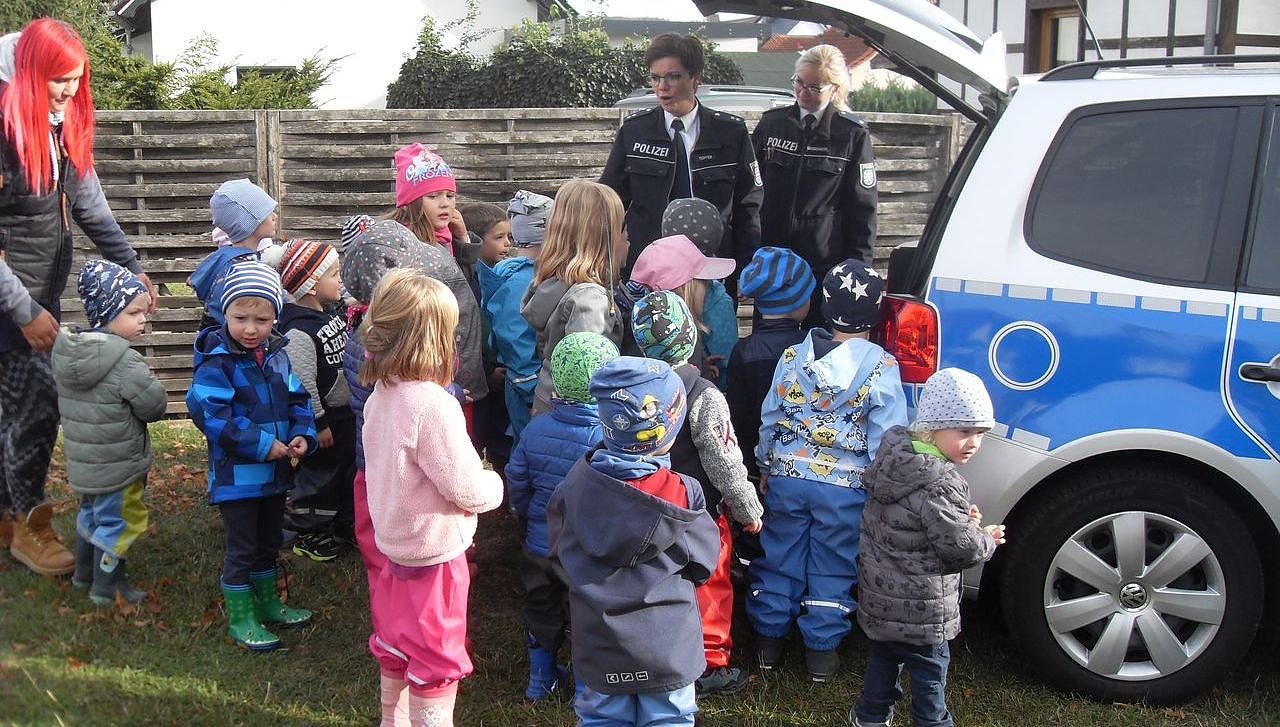 Am Mittwoch dann, besuchte die Polizei den Kindergarten. Große Augen waren auch hier vorprogrammiert. Die beiden Polizistinnen berichteten über ihre täglich anfallenden Aufgaben und gewährten den Kleinen spannende Einblicke in die polizeiliche Arbeit.