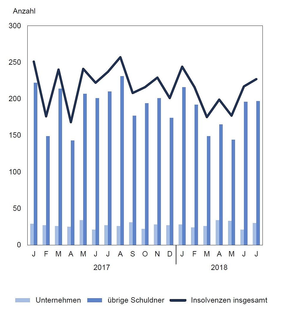 Gemeldete Insolvenzverfahren von Januar 2017 bis Juli 2018 (Foto: TLS)