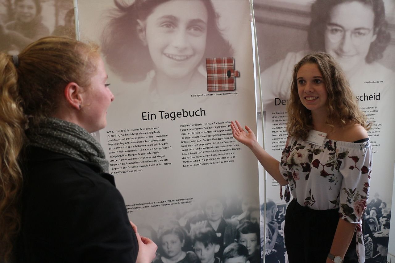 Für zwei Wochen werden 19 Freiwillige, zumeist Schülerinnen und Schüler aus dem Landkreis aber auch einige Studierende, Besuchergruppen durch die Ausstellung führen. Im Fokus stehen dabei natürlich vor allem Schulklassen, Kinder und Jugendliche, wie einst auch Anne eine war. "Ich finde das gut das es solche Aktionen gibt bei denen Jugendliche für Jugendliche aktiv werden", erzählt Emily, eine der Freiwilligen aus dem Herder-Gymnasium. Natürlich hätten sie in der Schule Anne Frank schon behandelt, in der Ausstellung habe sie aber dennoch viel neues erfahren können. Weit weg ist die Geschichte für die Neuntklässlerin dabei nur bedingt. Die Umstände, die Konzentrationslager, der Krieg, das ja. Ausgrenzung, Antisemitismus, Diskriminierung und die Suche nach Sündenböcken, das gebe es heute noch genauso wie damals. Es wäre schön, wenn man endlich aus der Geschichte lernen könnte, meint die Schülerin, "lasst die Menschen leben wie sie sind."