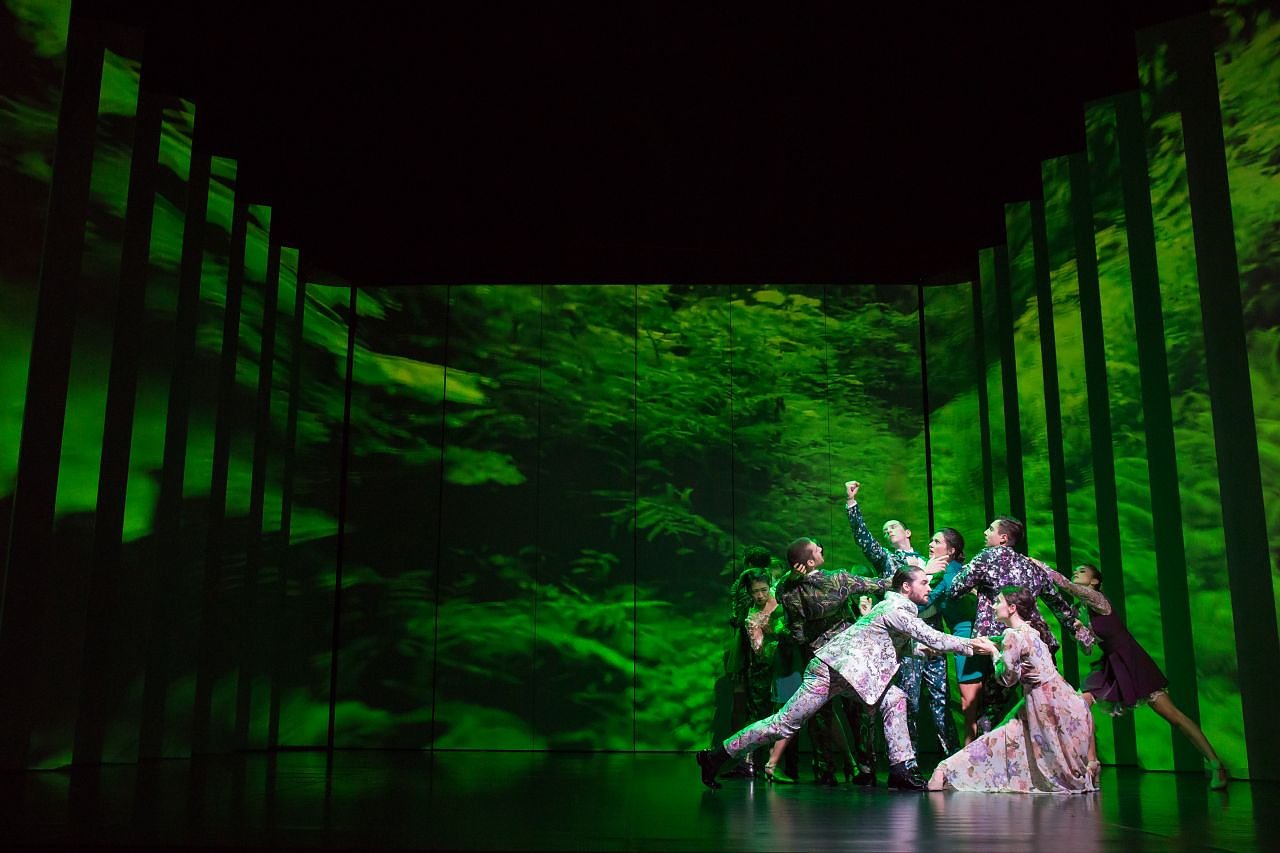 Ballettdirektor Ivan Alboresi entführt mit seinem Ballett TN LOS! das Publikum in eine magische Welt. Der höfischen Welt des Fürsten Theseus und seiner Braut, der besiegten Amazonenkönigin Hippolyta, setzt er die Zauberwelt des Waldes entgegen. Hier werden die Figuren des Balletts sich ihrer selbst bewusst, kommen zu sich selber und können damit zueinander finden.