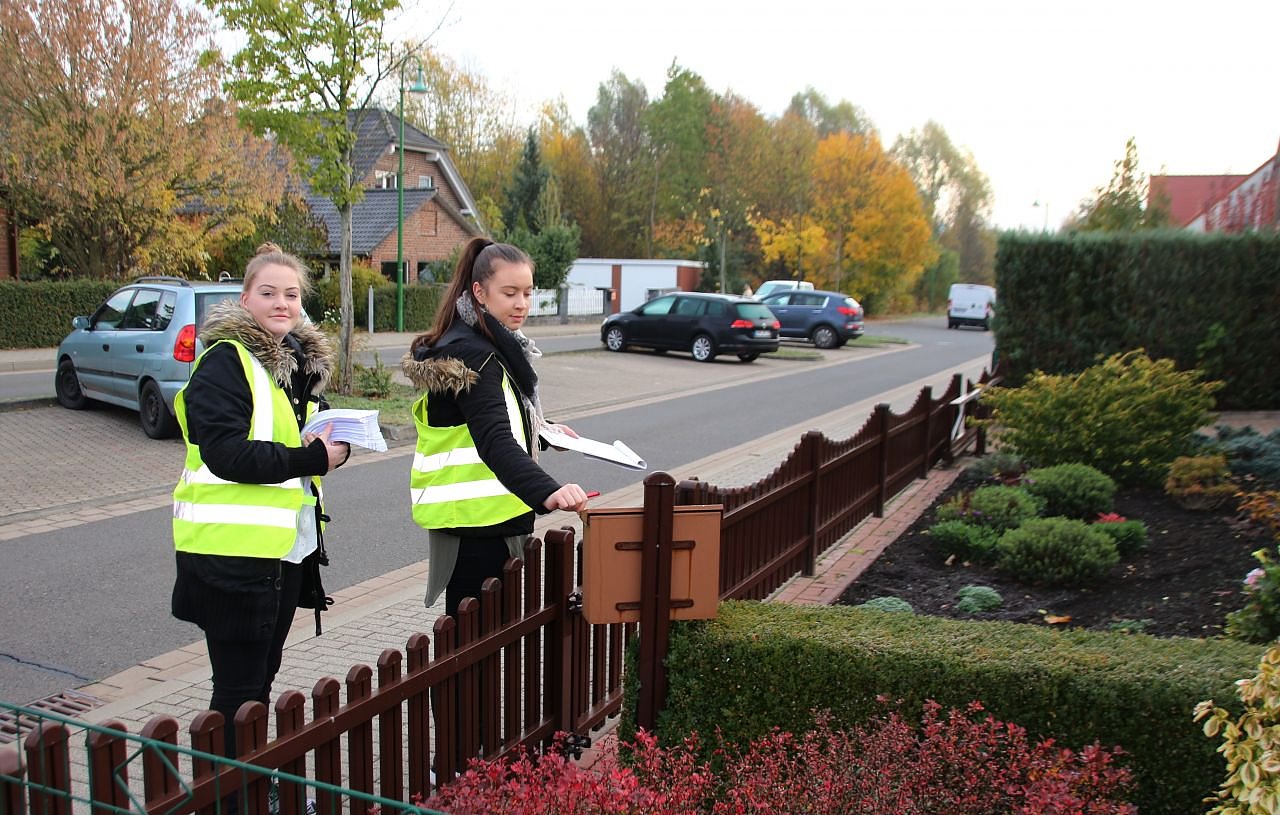 Die Auszubildenden Luisa Buchs und Ecehan Sürmeli unterstützen dabei das städtische Ordnungsamt.