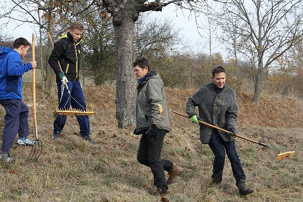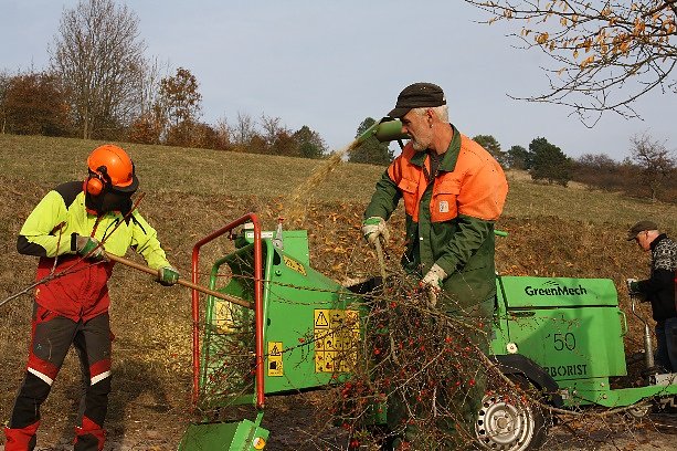 Diese FFH-Lebensräume bedürfen einer besonderen Pflege. So konnten am 09. November 2018 bei herrlichem Herbstwetter 34 Freiwillige, darunter sogar interessierte Bürger aus Sondershausen und Nordhausen, motiviert werden, die Flächen zu mähen und anschließend das Mähgut zusammenzutragen, aufkommende Gebüsche sowie unerwünschte Neueinwanderer (Neophyten) zu entfernen und später ordnungsgemäß zu entsorgen. Des Weiteren wurden junge Bäume einem Baumschnitt unterzogen und Totholz aus alten Bäumen entfernt, wobei das das angefallene Schnittmaterial mittels Holzhäcksler direkt vor Ort zerkleinert werden konnte. Gipssteine wurden zu Lesesteinhaufen zusammentragen, welche später wiederum verschiedenen Kriechtieren als Lebensraum dienen. Die benötigten Werkzeuge sowie die erforderliche Technik wurde durch die Natura-2000-Station Südharz/Kyffhäuser in Kooperation mit der Naturparkverwaltung Kyffhäuser bereitgestellt.