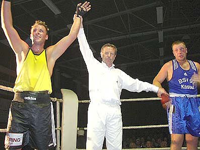 Nordhausen (nnz). Die erfolgreichste Veranstaltung seit Jahren haben die Boxer des Nordhäuser Sportvereins am Wochenende erlebt: Mehr als 500 Zuschauer waren zur 1. Nordhäuser Boxnacht 2005 in die Ballspielhalle gekommen – und erlebten...... eine Nordhäuser Mannschaft, die den Gästen aus Hessen und Thüringen überlegen war: Bei 7 von 12 Kämpfen verließen die Nordhäuser den Ring als Sieger. Höhepunkt und zugleich Finale der Boxnacht war der Superschwergewichts-Kampf des Nordhäuser Thüringen-Meisters Michael Werner gegen den Hessen-Meister Sven Meyer, den Werner nach Punkten für sich entschied – frenetisch gefeiert vom Nordhäuser Publikum, sagte Konrad Werner, Cheftrainer der Nordhäuser Boxer. Bemerkenswert war auch der Sieg von Steffen Wehrmann gegen den Suhler Heiko Greiner: Schon in der 1. Runde hat Steffen seinen Gegner auf den Boden geschickt – und damit zur Aufgabe gezwungen. Und Ruslan Alijew schaffte trotz Handverletzung eine Unentschieden gegen seinen Mittelgewichts-Gegner Andre Herrmann aus Suhl, so Werner.