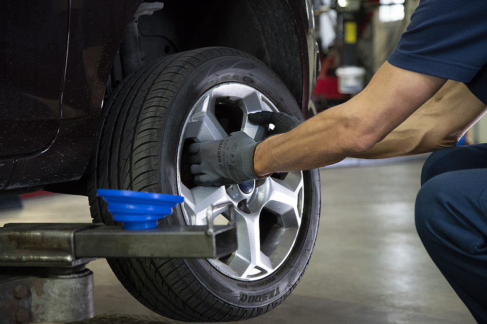 Professionelle Lösungen, wie sie beispielsweise Berner anbietet, werden sogar nur aufgesprüht und müssen nicht mehr abgespült werden – in Sekundenschnelle glänzen alle Reifen wieder wie neu. Sind die Reifen sauber, heißt es: Augen auf! Jedes Rad sollte gründlich auf Risse oder andere Schäden kontrolliert werden. Ein Blick auf die Reifenflanke lohnt sich ebenfalls, da die sogenannte DOT-Nummer Auskunft über das Herstellungsdatum gibt. Sind die vorhandenen Reifen zu alt (empfohlen wird eine maximale Altersgrenze von sechs bis allerhöchstens zehn Jahren), kann sich das unter Umständen negativ auf die Fahrstabilität und das Bremsverhalten auswirken. In diesem Fall ist es ratsam, sich rechtzeitig vor der nächsten Wechselsaison im Frühjahr passende Ersatzreifen zu bestellen. Das gleiche gilt auch, wenn der vorhandene Reifensatz nicht mehr genug Profil hat. Zur Info: Die gesetzlich vorgeschriebene Mindestprofiltiefe beträgt 1,6 Millimeter.