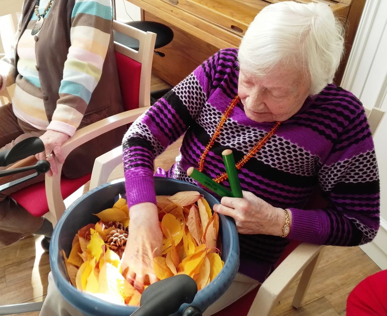 In einer besinnlichen Stunde der Beschäftigung ging es Rund um das Thema Herbst. Das Wetter an diesem Tag konnte gar nicht besser sein, da der November noch einige schöne Tage bereit hielt. Neben reichlich Sonnenstrahlen, die durch die großen Fenster in das Sonnenstübchen schienen, wehte draußen ein schwacher Wind bei sehr milden Temperaturen. Ein Wind, dennoch so stark, dass er die herabfallenden Herbstblätter von einer Stelle zur anderen trug. Ein Blick in den Garten des Innenhofs zu dieser Jahreszeit ist im wahrsten Sinne des Wortes Gold wert. Einige der goldgelben Blätter an den verschiedenen Zweigen wurden eigens für diese Runde im Sonnenstübchen auf gehangen. Ob Lärche, Ahorn, Birke oder Zierkirsche, alle Blattarten konnten von den teilnehmenden Bewohnern zugeordnet werden. Eine Schüssel voll mit bunten, vom Morgentau angefeuchteten Blättern die nach Natur rochen, Herbstlieder und eine Herbstgeschichte die mit Orff Instrumenten vertont wurde, rundeten diese besinnliche Stunde ab.Die Geschichte vom tapferen...
