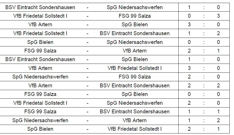 4. SpG Bielen Tore 2 : 5 Punkte 5