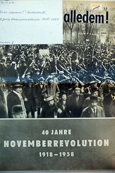 Anlässlich des Jubiläums 1958 wurde in der ehemaligen DDR ein Sonderheft Trotz allem! über die Revolution in den Novembertagen 1918 herausgegeben. Ein Exemplar befindet sich im Stadtarchiv (Foto: Pressestelle Stadt Nordhausen)