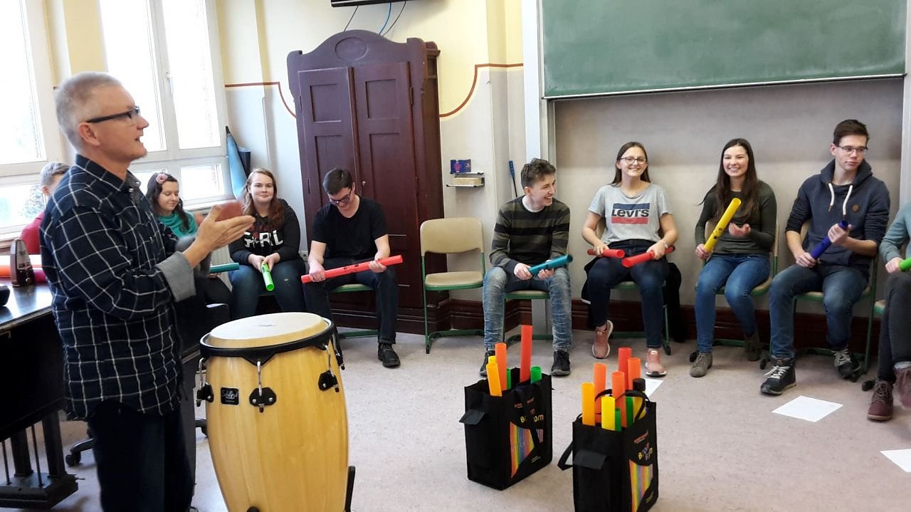 Für diese Faszination sorgte Klaus Hagedorn aus Nordhausen, der als ausgebildeter Schlagzeuger regelmäßig Trommelkurse anbietet. Ihm gelang es, mit den unterschiedlich langen Kunststoffröhren, die verschiedene Tonhöhen erzeugen und seit 1995 die Klangerzeugung in der ganzen Welt bereichern, Rhythmik und Freude zu vermitteln. Die damit gemeinten Boomwhackers schulen gleichzeitig Rhythmus, Harmonie und Melodie, was sie für den Musikunterricht so unentbehrlich macht.