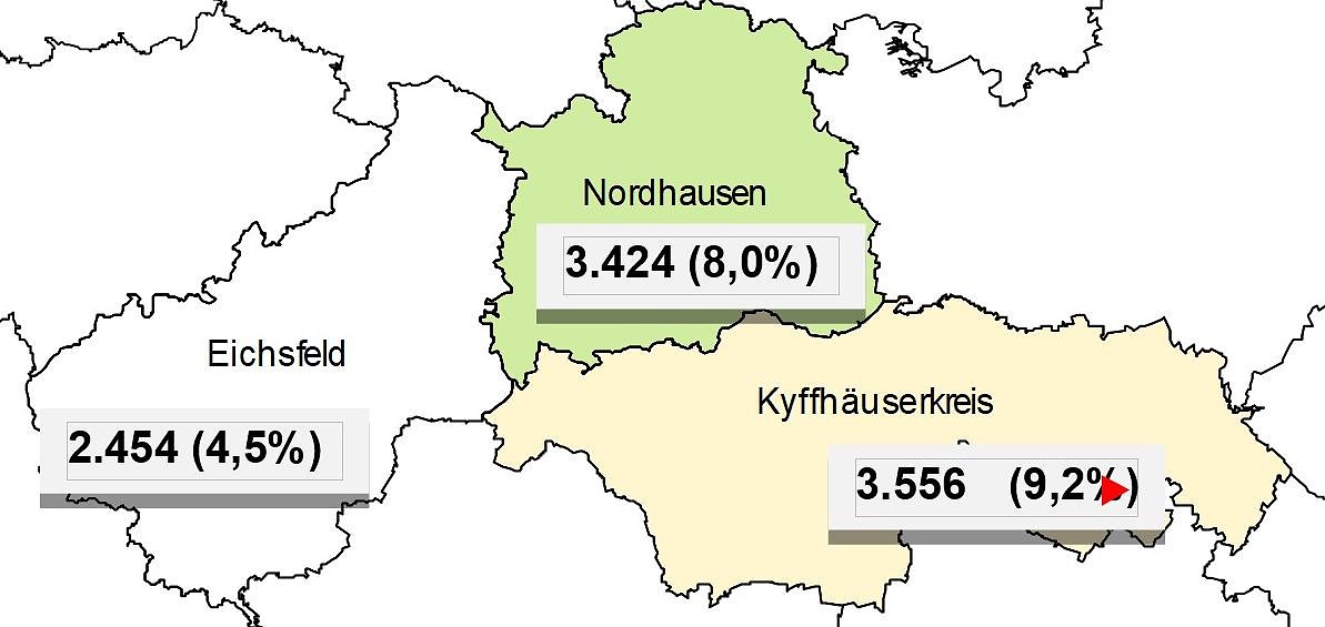 Mit dem Blick auf die Unterbeschäftigung* ergibt sich folgendes Bild: In den drei Nordtüringer Landkreisen sind demzufolge 12.436 Frauen und Männer ohne einen Job, das ergibt eine Quote von 8,9 Prozent.