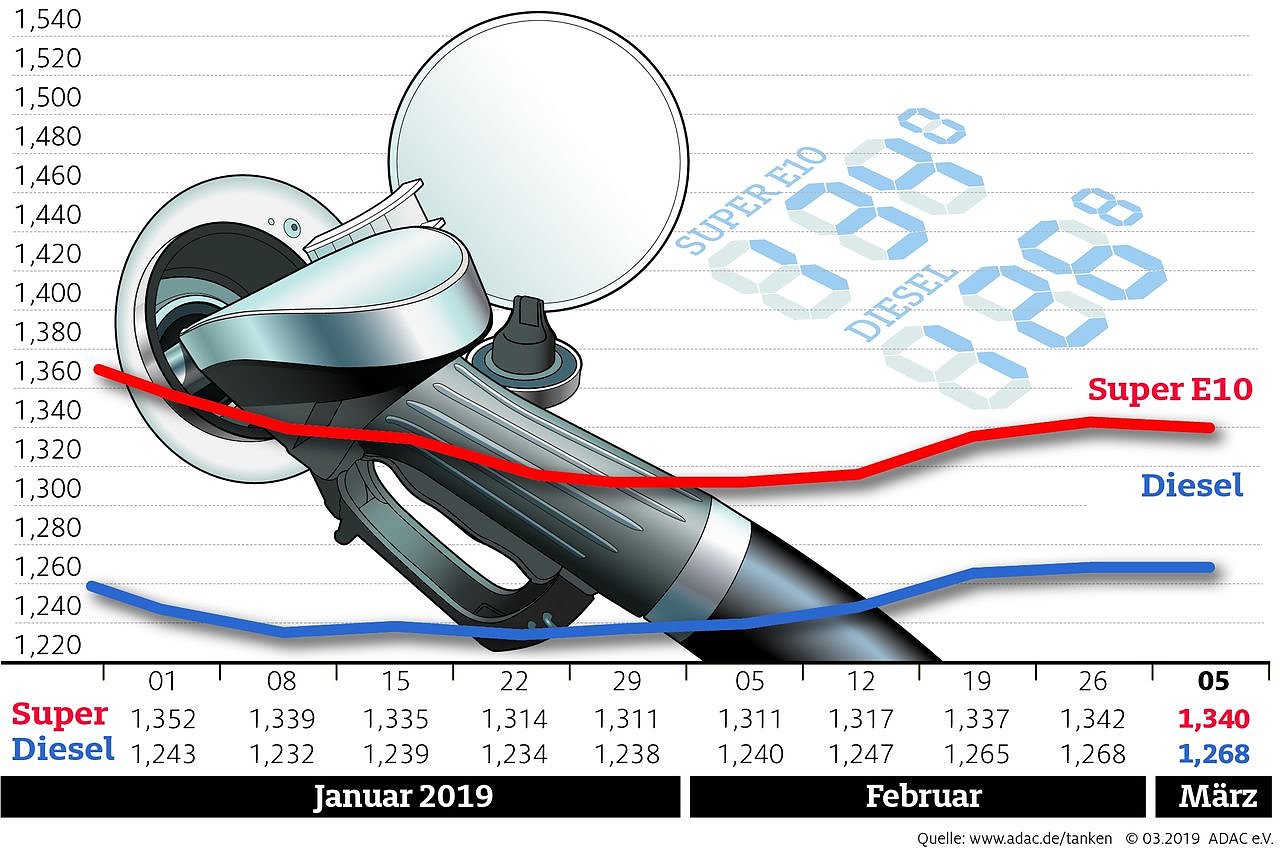 Autofahrer müssen an den Tankstellen fast genauso viel bezahlen wie in der vergangenen Woche. Laut aktueller Auswertung des ADAC verbilligte sich ein Liter Super E10 im Bundesmittel um 0,2 Cent auf 1,340 Euro. Unverändert blieb der Durchschnittspreis für einen Liter Diesel mit 1,268 Euro...