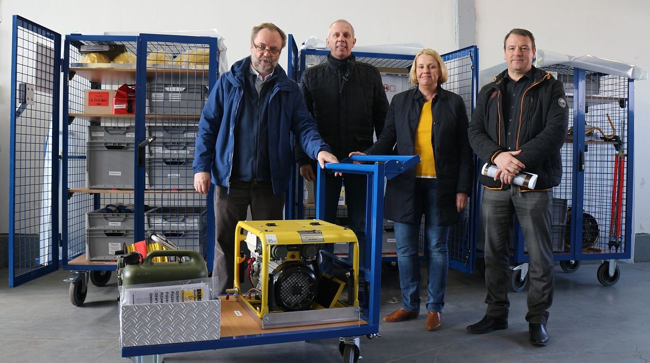 Neue Ausrüstung für den Nordhäuser Notfallverband - v.r.: Torsten Heß, Ralf Seeber, Jutta Krauth und Jörg Dietrich (Foto: Angelo Glashagel)