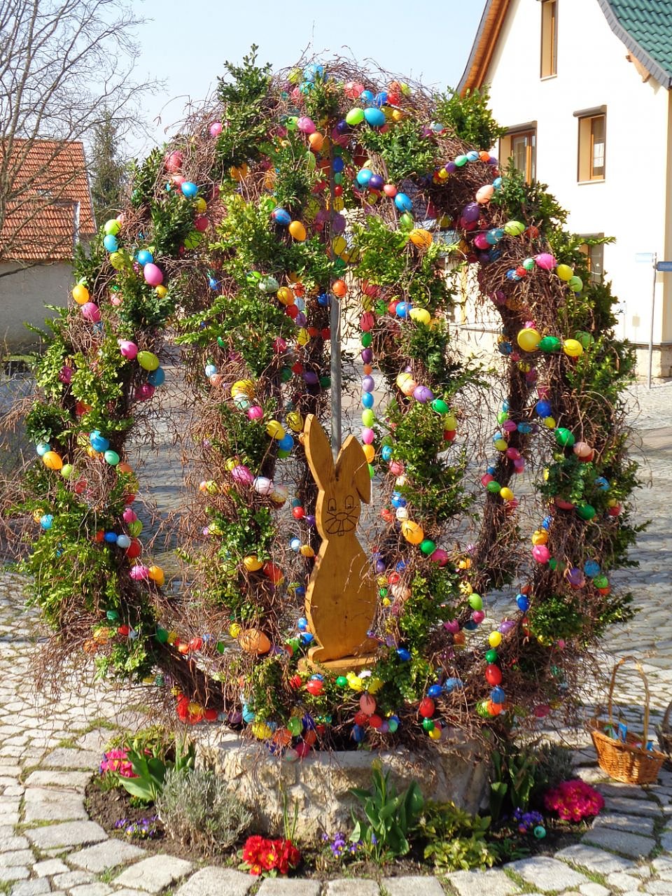 Autor: khhDieses Jahr haben sich die Frauen beim Schmücken besonders viel Mühe gegeben. In einer Unmenge von Birken- und Buchsbaumzweigen sind fast 1.000 bunte Eier eingebunden.