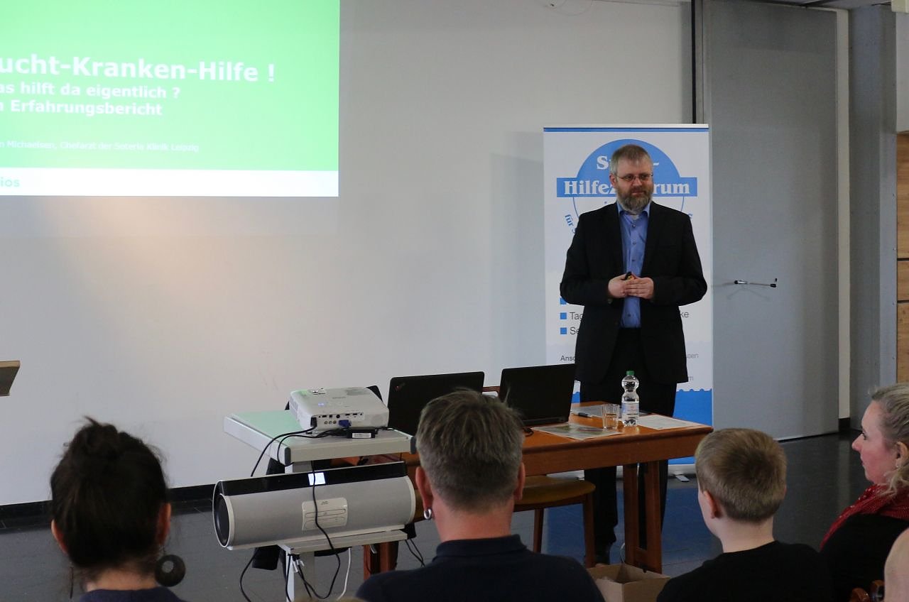 Wie aber vorgehen? Welche Methodik ist wann wirksam? Darüber sollte heute diskutiert werden. Michaelsen, selber Psychotherapeut, legte dem Publikum die Grundlagen deutscher Suchtpolitik und die üblichen Schritte auf dem Weg zur Absitnenz dar.