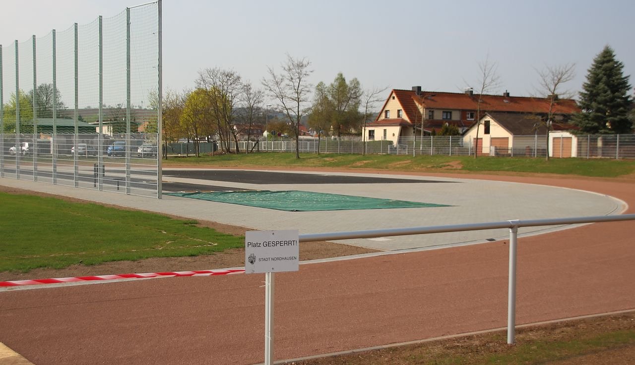 Die Stadt Nordhausen erhielt für diese hoch frequentierte Sportanlage eine Förderung von der GFAW Thüringen von rund 200.000 Euro. Die Kosten der Gesamtmaßnahme betragen 690.000 Euro. Durch die mehrwöchige Fertigstellungspflege durch die ausführende Firma STRABAG soll der Belag der Tenne erst nach Beendigung des Schuljahres 2018/19 benutzt werden. Ebenso wird der ortsansässige Sportverein den bestehenden Rasenplatz wieder in der neuen Saison 2019/20 bespielen können. Der neue Rasenplatz (Kleinfeld) soll erst 2020 für die Nutzung freigegeben werden, auch hier soll dem Rasen Zeit gegeben werden zu wachsen.