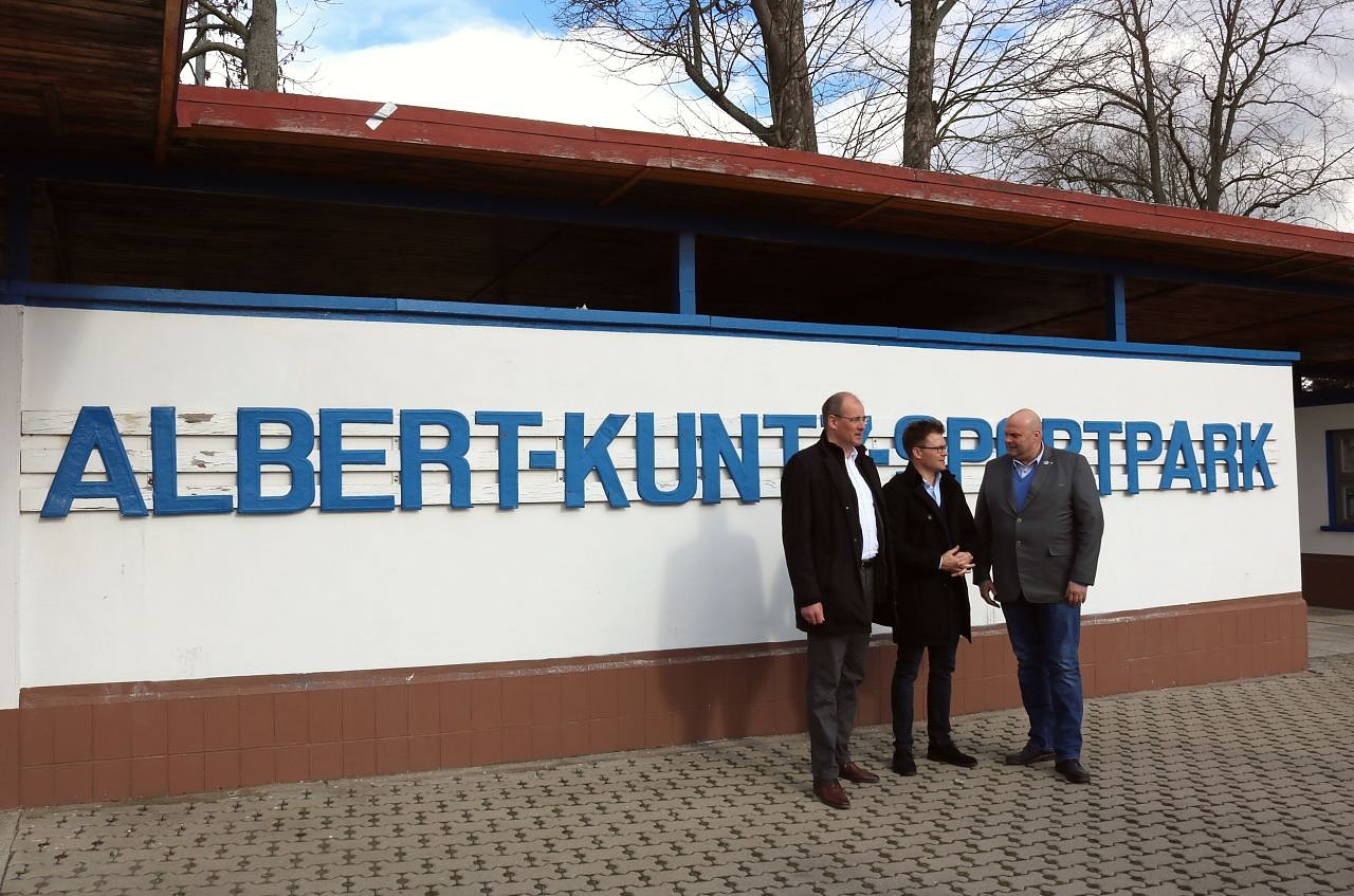 Der Bundestagsabgeordnete Carsten Schneider überzeugte sich im März gemeinsam mit Landrat Matthias Jendricke vor Ort von der Notwendigkeit der Sanierung und des Ausbaus. Carsten Schneider betont: Nach Jahrzehnten der Nutzung gibt es vor Ort einen großen Sanierungsbedarf. Es ist Zeit die Sportstätte tauglich für das 21. Jahrhundert zu machen.