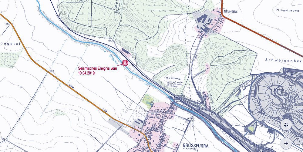 Am 10.04.2019 ereignete sich um 21:00 Uhr ein seismisches Ereignis im Grubenfeld Westfeld VI der Grube Sondershausen.