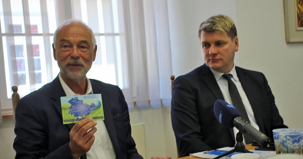 Gestern stellten Projektleiter und Erfinder des MDR THÜRINGEN Osterspaziergangs, Mathias Kaiser (li), und Bürgermeister Matthias Strejc (re.), der Geschäftsführer der Kur- und Tourismus GmbH, Jens Lüdecke und der Marketingleiter der Stadt Bad Frankenhausen, Peter Möbius, den Ablauf vor.