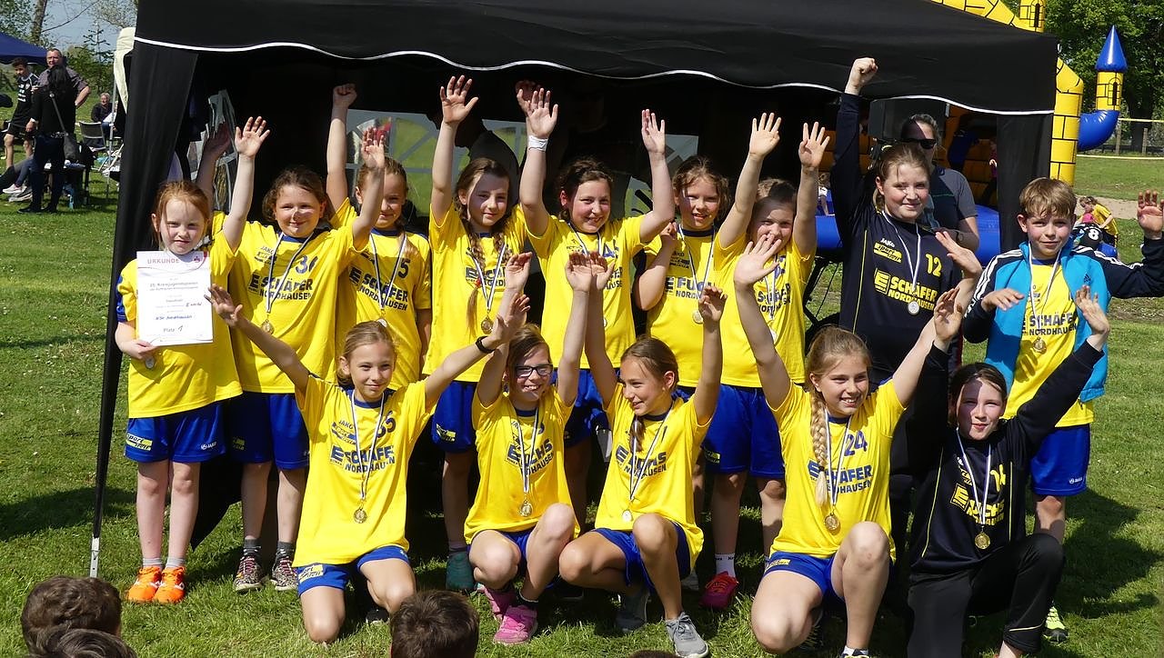 In der gemischten E-Jugend holte sich die Mannschaft des NSV den 4. Platz und in der rein weiblichen E-Jugend sogar die Goldmedaille. Für ein Teil der Mannschaft war es die 1. Turnierteilnahme für den NSV. Mit viel Spaß aber auch Durchsetzungswillen erkämpfte die gesamte Mannschaft diese tolle Platzierung. Im Laufe des Turniers wurde die Mannschaft geschlossener und jeder Spieler konnte seine Qualität zeigen, sei es im Angriff mit vielen schönen Toren, bei erfolgreicher Arbeit in der Abwehr oder auch durch tolle Paraden der Tormädchen. Der Trainer der kleinen Handballhexen Jens Friedrich ist stolz auf seine Mädels für die super Leistung, die sie gezeigt haben.