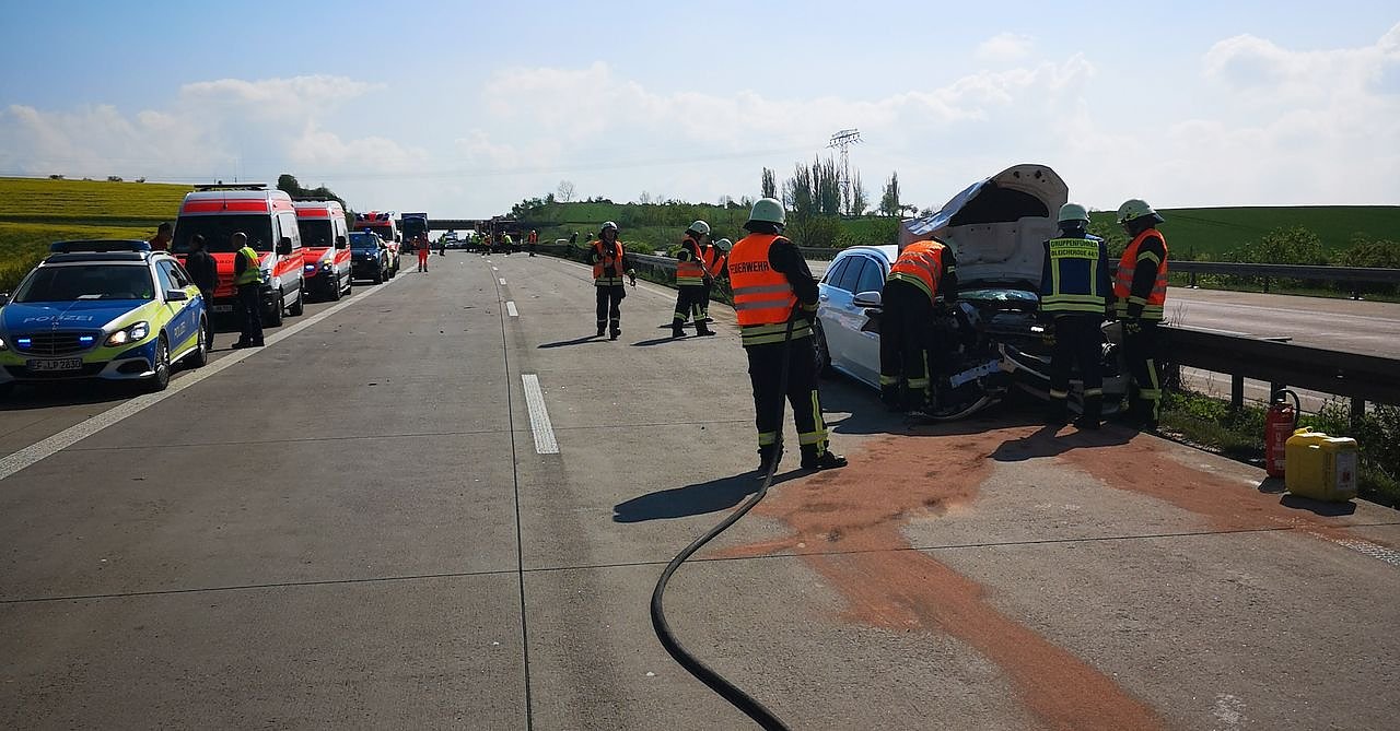 Kurz nach 15 Uhr waren unter anderem zwei Autos zwischen den Anschlussstellen Bleicherode und Großwechsungen unterwegs. Als ein Fahrzeug das andere überholen wollte, kam es zum seitlichen Zusammenprall. Der Aufprall muss sehr heftig gewesen sein, da Trümmerteile bis auf die Gegenfahrbahn geschleudert wurden.