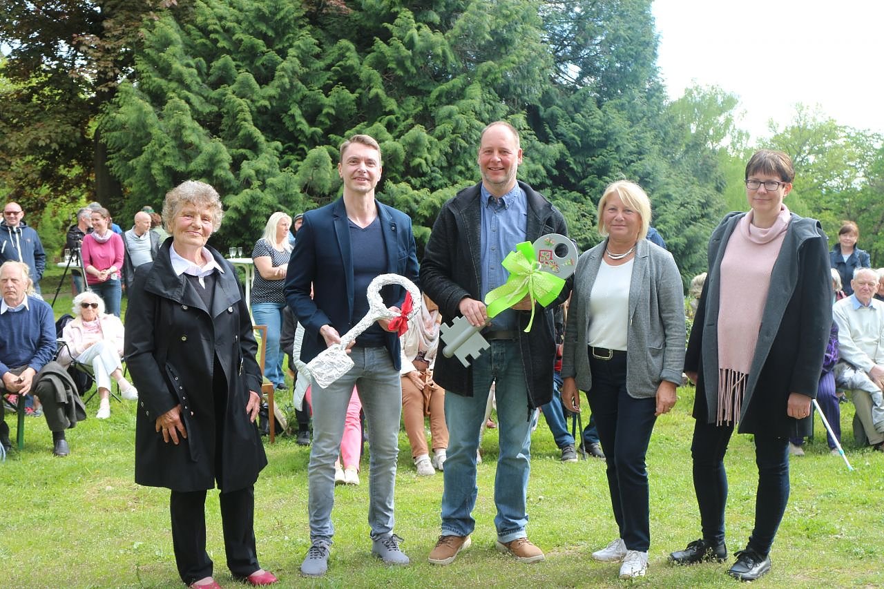 Viel Worte, viel Lob und viele Blumen brachte der Nachmittag mit sich. Im Park steht nun auch ein Baum, der Frau Hartmann gewidmet ist. Die "Parkmutter" nahm es gewohnt gelassen und verschenkte die Gaben prompt an ihre Nachfolger. Denen sie von Herzen dankbar sei, dass sie nun "in die Freiheit" entlassen werden. Sie sei Stolz kein "marodes Unternehmen" zu übergeben, sondern eines, das seine schwierigsten Zeiten gut überstanden habe. Herkulesstaude, Pilzbefall und Haussschwamm hat man besiegt, die Statik der Villa gesichert, das Dach abgedichtet. Hat das Geld wieder einmal nicht gereicht, dann hat man selber Hand angelegt, vom Keller bis zum Dachgeschoss. Die Mühen haben sich gelohnt. "Wir können heute von oben bis unten in die Umsetzung gehen. Es läuft und es wird in Zukunft leichter laufen", sagte Gisela Hartmann.