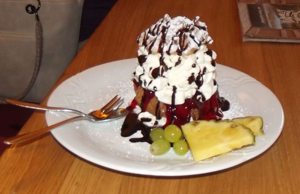 Einige probierten ersatzweise den Jackenärmel unserer Damen und Herren zu verkosten, aber frisches Gras und andere Zugaben schmecken doch sicher viel besser. Zum Kaffee stand wieder eine große Auswahl an sehr leckeren Kuchen zur Wahl. Meine Frau wählte zum Beispiel einen großen Windbeutel mit Roter Grütze, ich nahm Mandarine-Schmand-Torte. Auch diese Kuchen und Süßspeisen waren wieder ein wahrer Genuss.