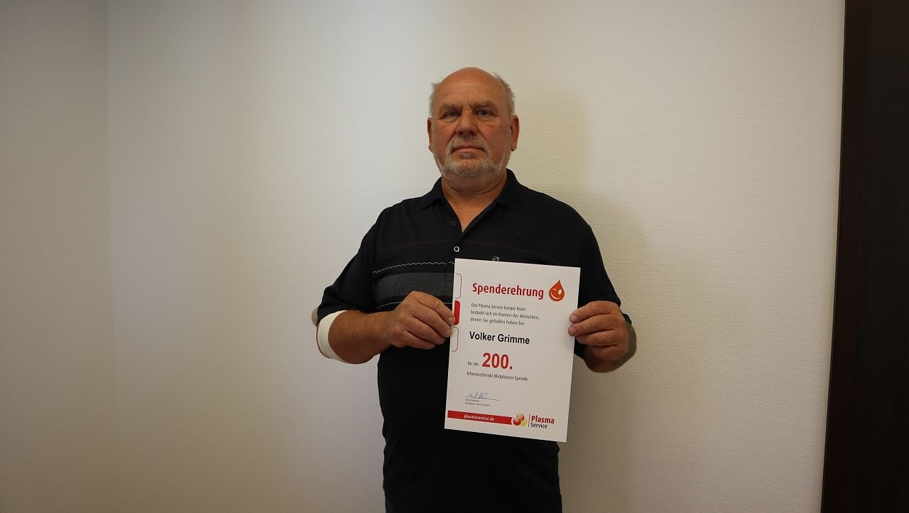 200 mal Plasma gespendet