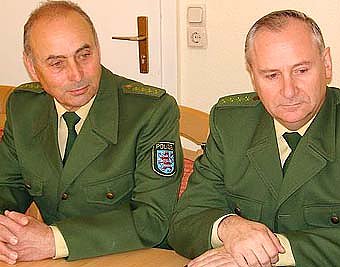 Der 60jährige Polizeihauptmeister Hugo Erhard (links im Bild) ist seit 1966 Polizist, war zu DDR-Zeiten Abschnittsbevollmächtigter (ABV), nach der Wende unter anderem im Ermittlungsdienst tätig und war seit 1995 KOBB im Südharz. In seiner Freizeit hat er sich dem Ausdauersport schwimmend, radelnd oder laufend verschrieben.