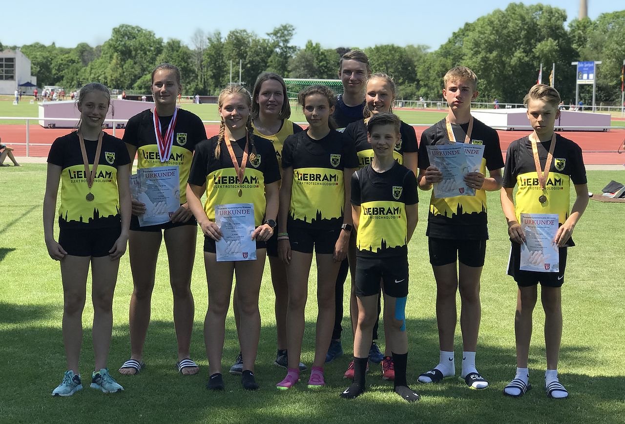 Wieder einmal kamen die Leichtathleten des LV Altstadt ’98 mit Medaillen geschmückt aus Arnstadt nach Hause. Allen voran Chantal Rimke, die dreimal Gold in den Disziplinen Speer 34,50 m, Kugel 11,39 m und im Diskus 29,83 m erreichte und im Hochsprung die Latte bei 1,52 m übersprang...