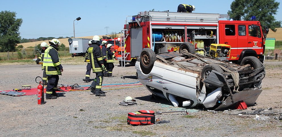 Nach dem Löschangriff und der Siegerehrung fand eine Einsatzübung der Feuerwehren Wolkramshausen und Wernrode statt. Bei dem Hilfeleistungseinsatz wurde eine Rettung aus einem Fahrzeug simuliert, dabei wurde das Fahrzeug aus 10m Höhe fallend und auf dem Dach landend, mittels Schere und Spreizer als hydraulische Rettungsgeräte geöffnet.