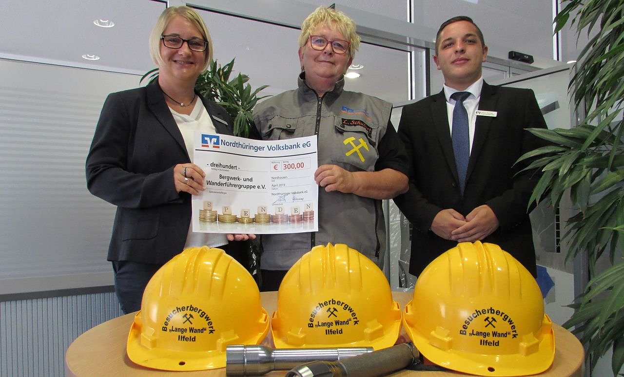Die Niedersachswerfer Filiale der Nordthüringer Volksbank unterstützt den Bergwerk -und Wanderführergruppe Ilfeld/Wiegersdorf...