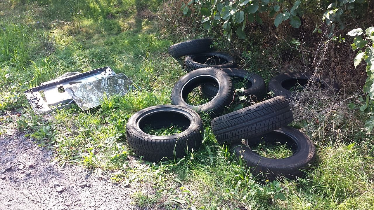 Autor: redAuf dem Weg haben Unbekannte offensichtlich alte Reifen und anderen Schrott entsorgt.