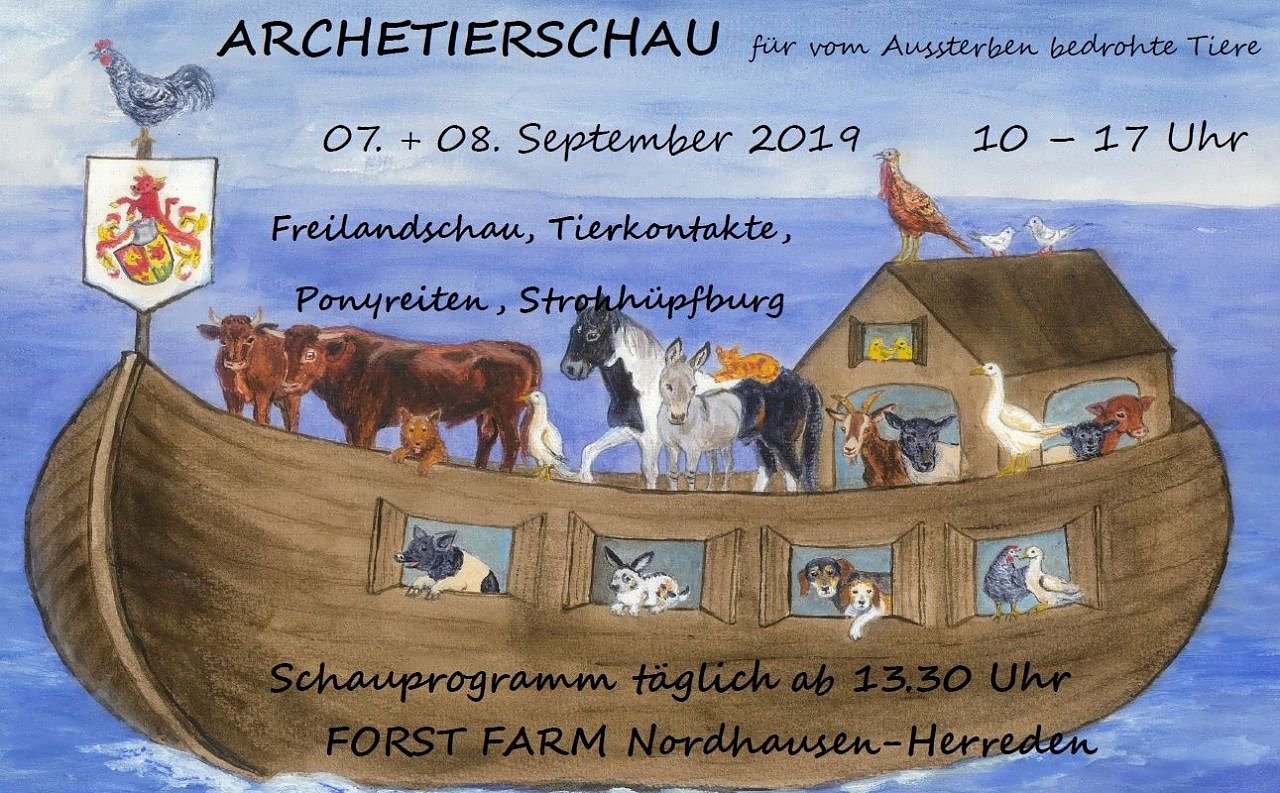 Am kommenden Wochenende führen wir nun zum vierten Mal auf der Forst-Farm zwischen Hochstedt und Herreden unsere einzigartige Archetierschau für vom Aussterben bedrohte Nutztiere durch...Jeweils am Samstag und Sonntag öffnen wir von 10 - 17 Uhr eine umfangreiche Freiland- und Hallenschau mit 40 bedrohten Rassen, vom flauschigen Kaninchen bis zum großen Kaltblutpferd, außerdem wird es eine Strohhüpfburg, Ponyreiten und Bauernhofspiele geben.